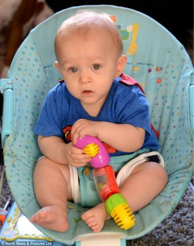 Сега Аарон има 15 месеци, на сликата е со неговата мајка