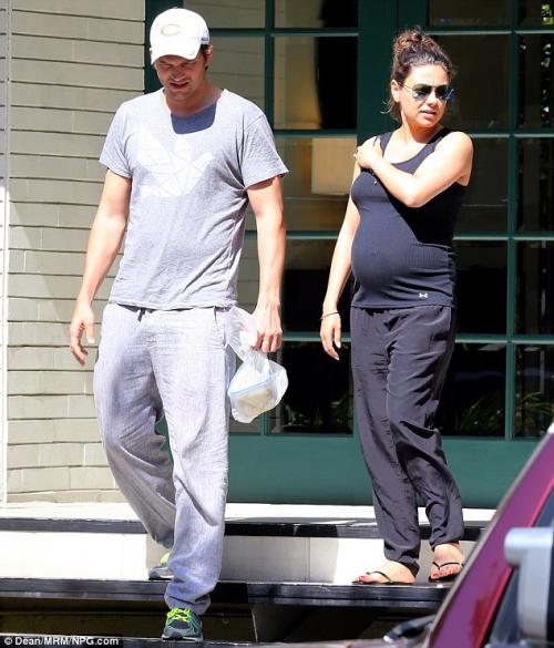 Без шминка, опуштена и среќна, Мила Кунис и Аштон Качер заедно во посета кај нејзните родители.