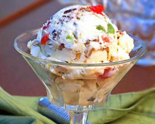 Кога ќе го послужувате сладоледот, можете да го сервирате со свежо овошје.
