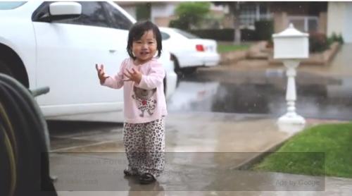 Девојчето се вика Kayden. Таа за прв пат изглегува на дожд, пресреќна е, блика од радост и ќе го стопи сечие срце. Прекрасен потсетник за сите нас, за тоа дека најголемата среќа ни е на дофат во секој миг. Само треба да ја препознаеме.