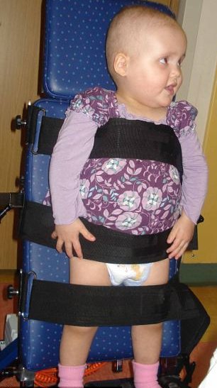 Терапијата на Мелиса после третманот на ракот. На сликата е врзана за да може повторно да ја носи својата тежина